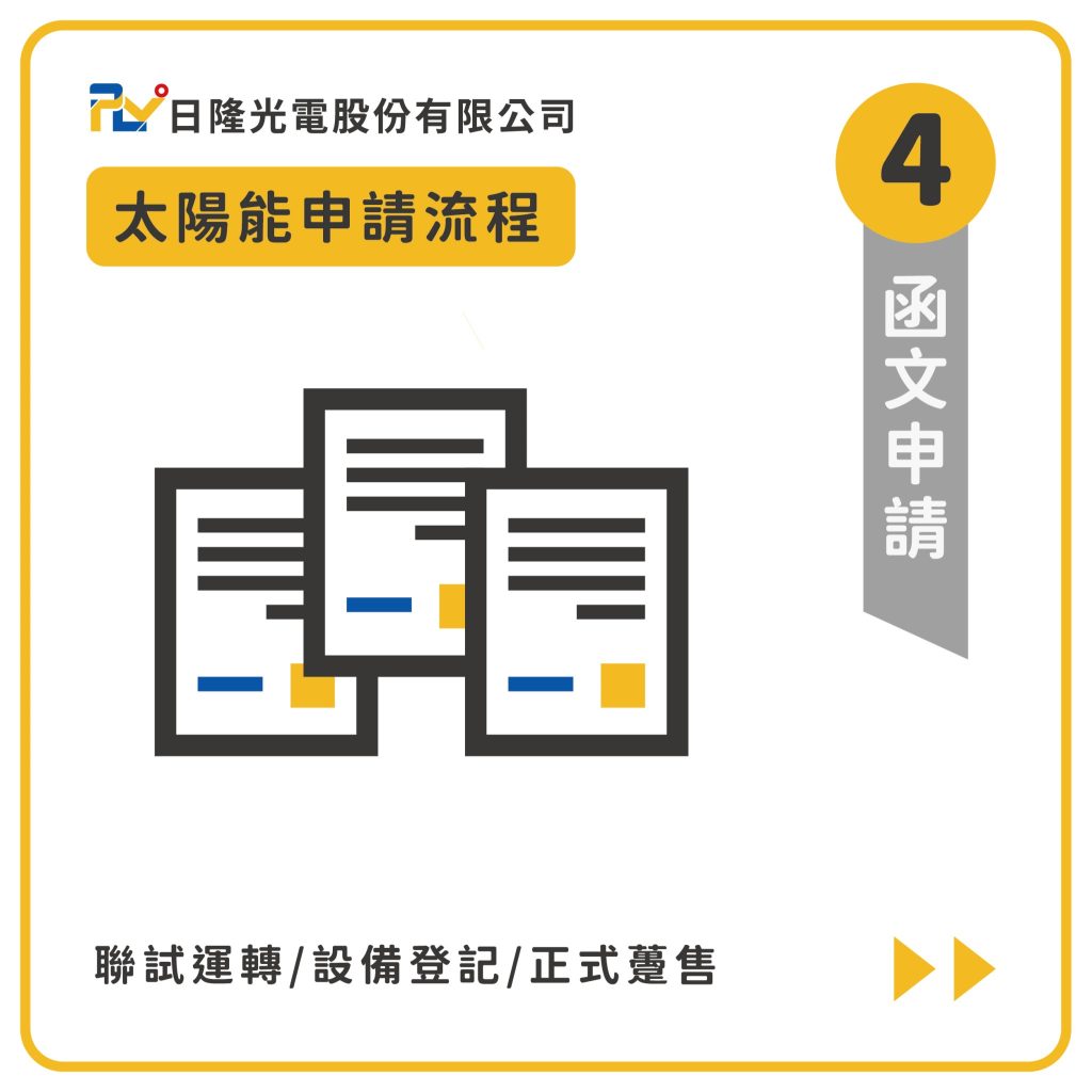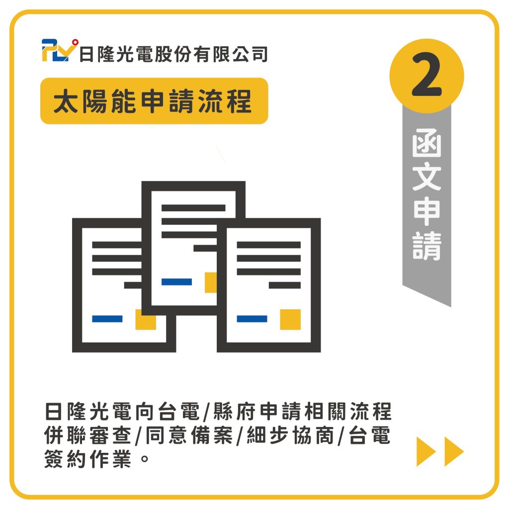 現場評估與規劃完成後,接下來就是太陽能系統正式申請的階段。日隆光電會代為向台電及各地方政府進行申請,這個流程包括了申請併聯審查、同意備案等多個步驟,確保所有必要的檔案和許可證都符合規範,讓申請過程變得更加順利。